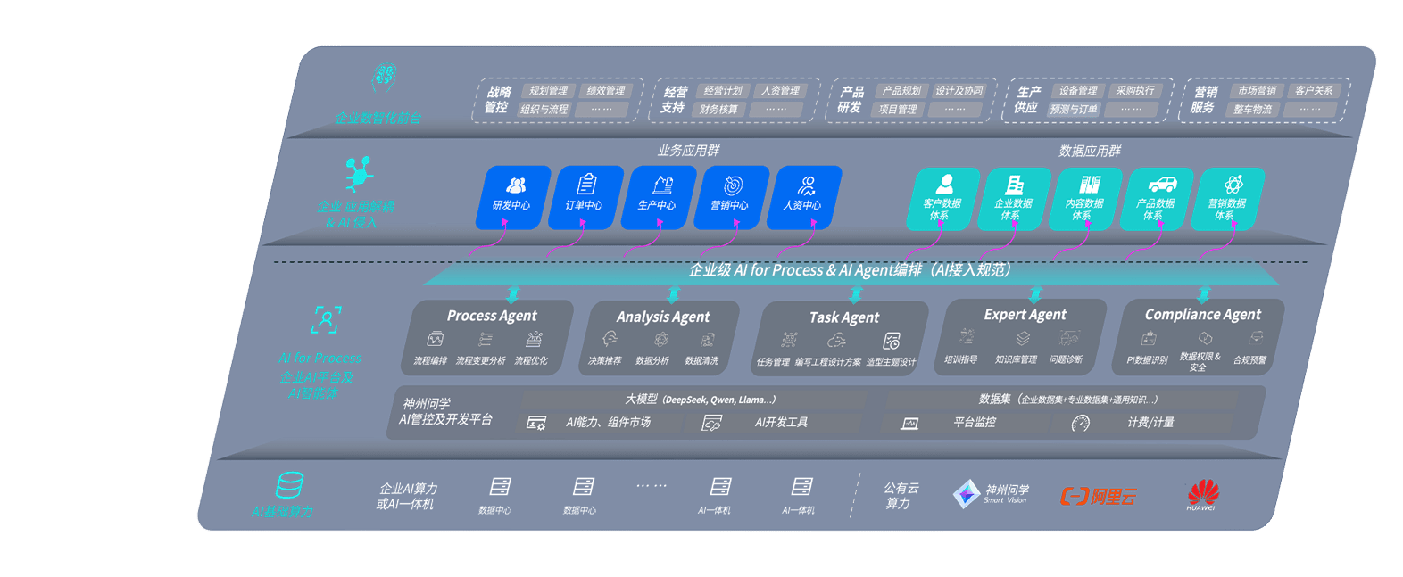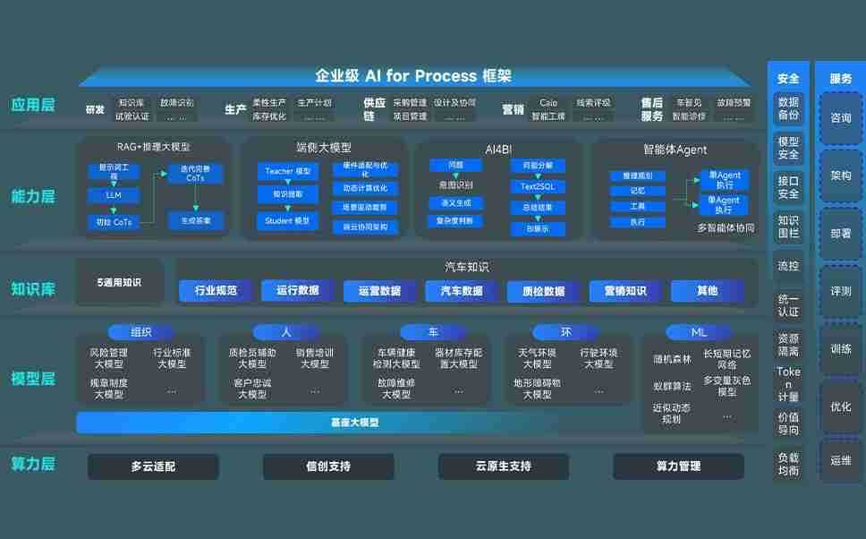 端到端的一站式AI工作空间深度融合了从企业战略规划到日常经营的全流程业务板块,,,,定向解决车企内部领域多、、部门多、、链条长、、场景碎片化等难题,,,,支持车企快速构建以AI为核心的生产力写作体系,,实现任务执行与AI能力的无缝集成与交互